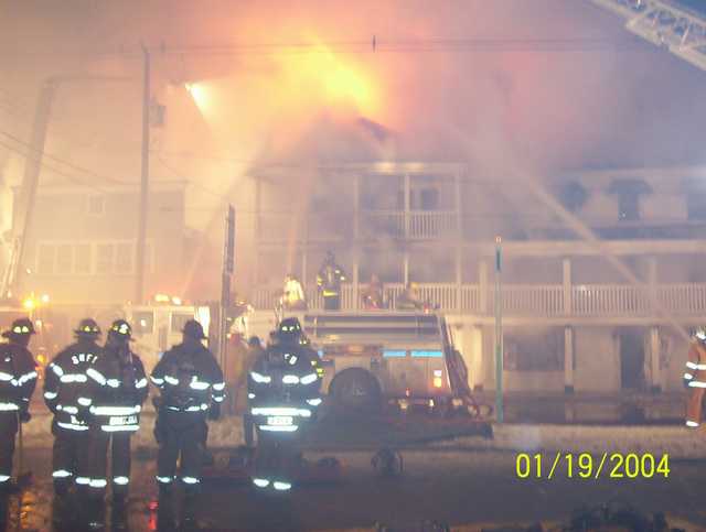 Port Jervis – For area firefighters, it was not a question of if but when. The Colonial Inn was a fire call many firefighters feared. They worried about the logistics of rescue, the layout of the dilapidated historic building built in 1832. It was three stories of white-washed timber. If it caught fire it would be tough to put out, and every Port Jervis firefighter knew it. On Monday evening, that call came. The landmark housed 35 people in 24 rooms. It had narrow hallways and narrow stairwells, uneven floors, ceilings and door sashes from years of add-ons and restorations. Those additions created nooks and crannies and alcoves, making it hard to negotiate in blinding smoke. By midday Tuesday, victory was officially declared: The fire was out. No injuries were reported, and all 35 tenants made it to safety. Firefighters were glowing Tuesday morning. Tired, cold, hungry, ice-coated – but triumphant. Rookies and veterans alike from Port Jervis and departments all over the region knew they had bested one of the most stubborn blazes in Port Jervis history. "Not in my 20 years have I seen a fire as stubborn or as tricky as this one here was," said Port Jervis fire Chief Mike Cicalese. The cause of the fire is under investigation, he said. According to Port Jervis records, the building was up to code and had not been cited for any recent violations. This summer, the inn's owner installed a new fire alarm system and made improvements to various parts of the balcony. Firefighters said the alarm system was working, but many tenants reported they heard no building-wide system sounding. The old building had sprinklers only in a portion of the basement. Paul Hanson, of Brittany Properties in Middletown, which owns and rents the apartments, could not be reached for comment. "What is amazing, truly amazing, is that no one got hurt or worse," Cicalese said. "If this thing had happened at 2 a.m., we'd still be pulling bodies out of here. Everyone's lucky it happened when it did." The fire broke out just after 6 p.m. Monday and crept from the southwest basement to the roof, which later collapsed, unleashing flames and a massive wall of acrid smoke. By 9 p.m. all tenants were accounted for. Bystanders, area businesses and others helped tenants find new or temporary housing. Homeless tenants were moved by school bus from makeshift shelters to Port Jervis High School. There, the Port/Pike Chapter Red Cross assisted the tenants. "The outpouring of help has been really incredible," said Kathi Cronin, a longtime tenant. She said organizations, such as the Red Cross, Bon Secours Hospital and the Port Jervis Community Development Agency, have been trying to help her and her husband find a new apartment. City officials weren't sure what was next for the old inn. Many seemed doubtful that the charred skeleton could be saved. There were no estimates on the cost of the damage, but according to 2003 assessment records, the property had a market value of ,672. Recently, the inn has been the subject of speculation that developers were interested in razing it and replacing it with an Eckerd drug store.